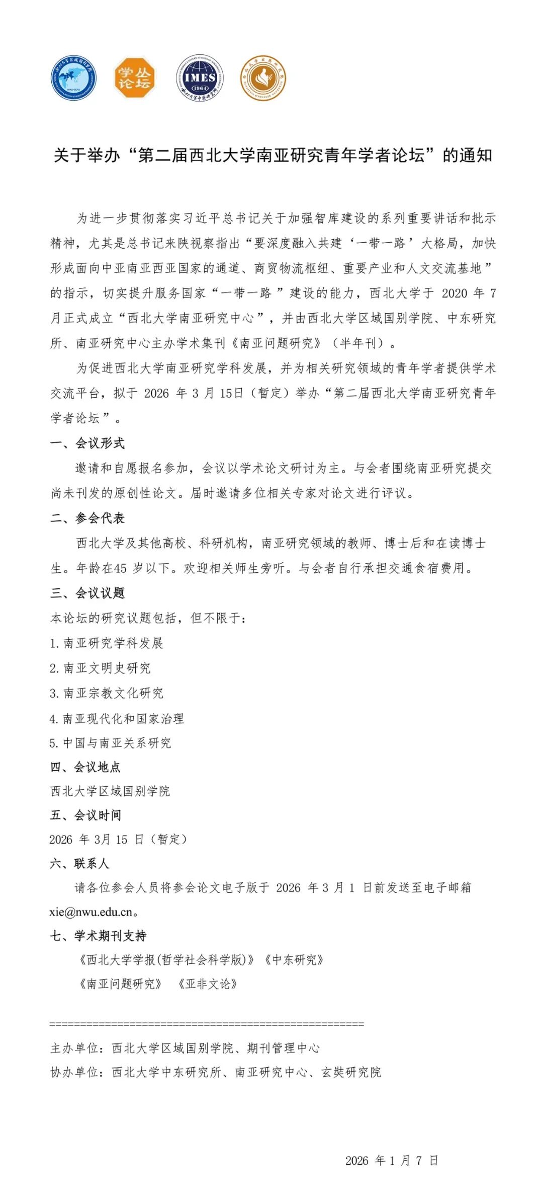关于举办“第二届西北大学南亚研究青年学者论坛”的通知