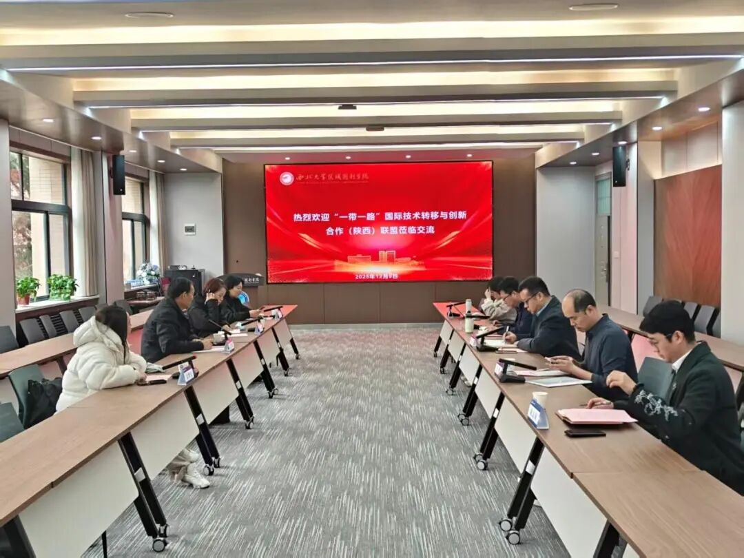12月9日下午,“一带一路”国际技术转移与创新合作(陕西)联盟(以下简称“联盟”)来我院调研交流,座谈会在区域国别学院“树人启智”报告厅举行。陕西省资源统筹中心副主任、联盟副理事长、秘书长王学立,联盟副秘书长、陕西省国际技术转移与创新合作中心负责人刘小燕等一行四人,学院部分教师参加座谈,座谈会由韩志斌院长主持。
